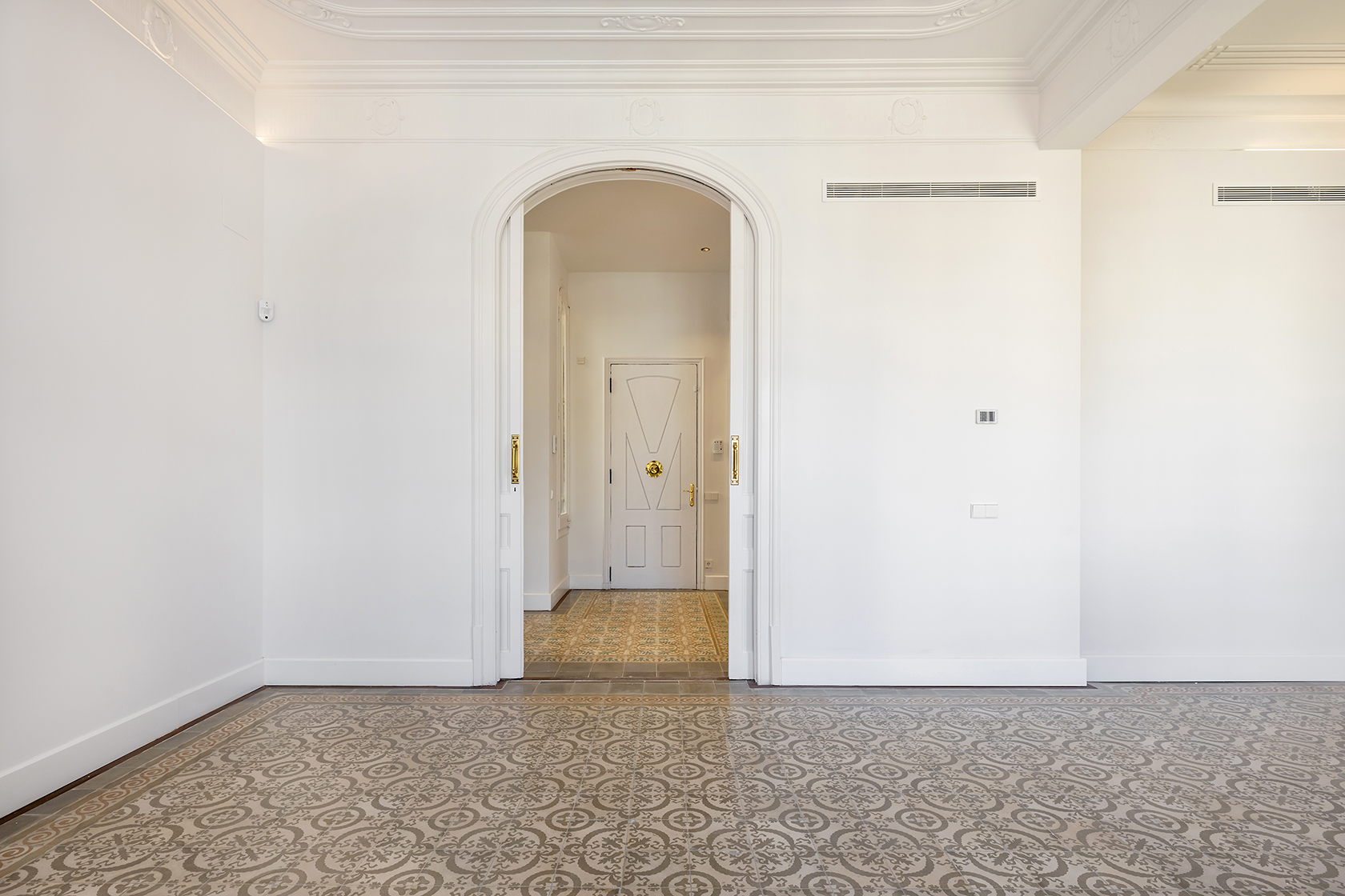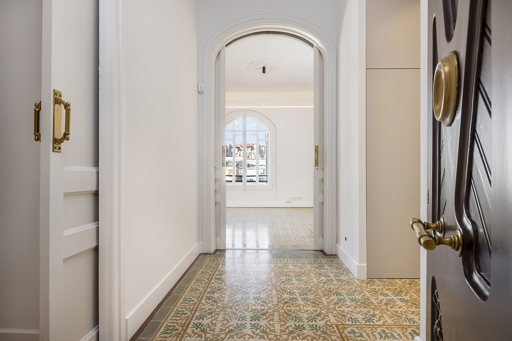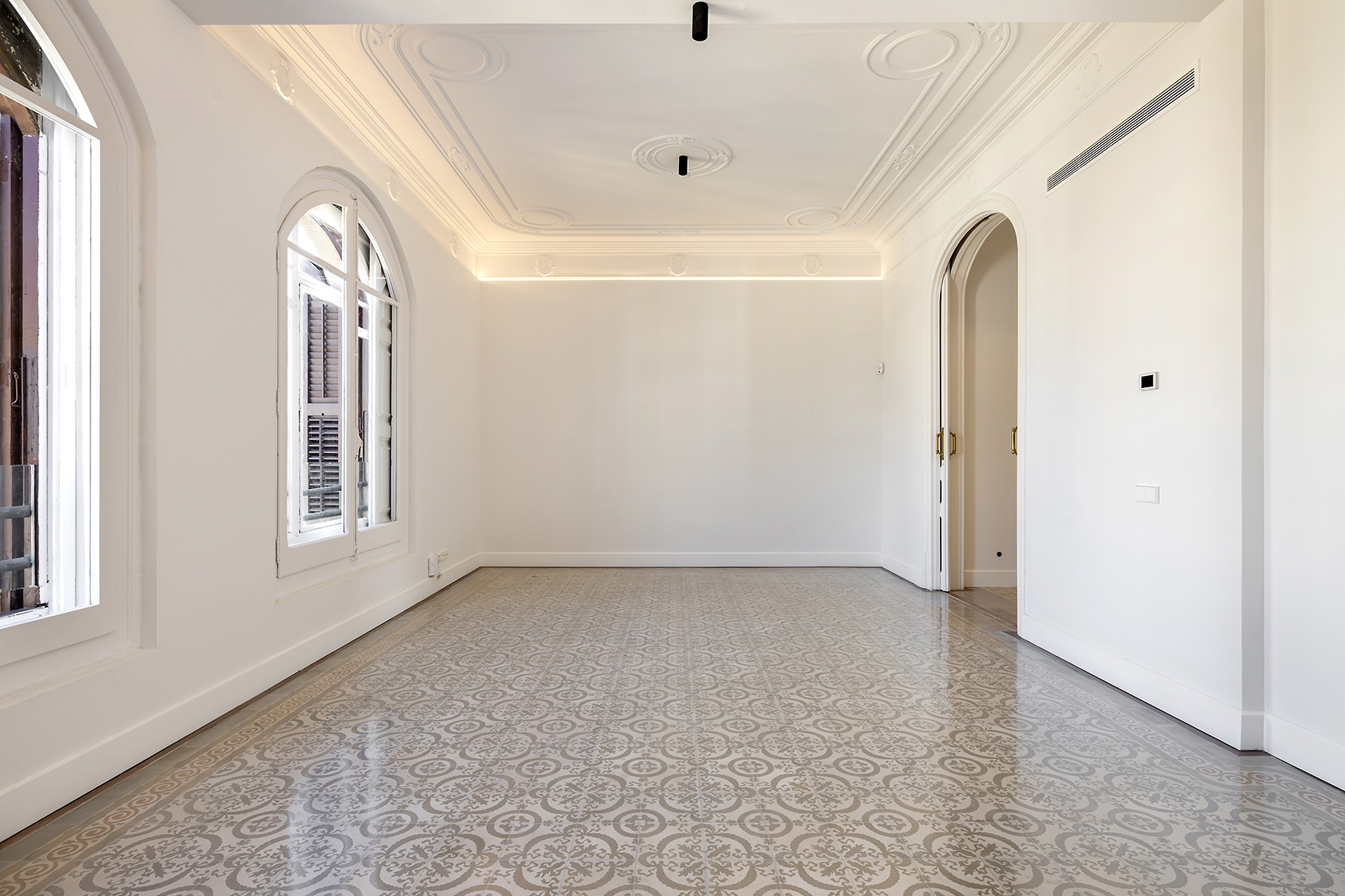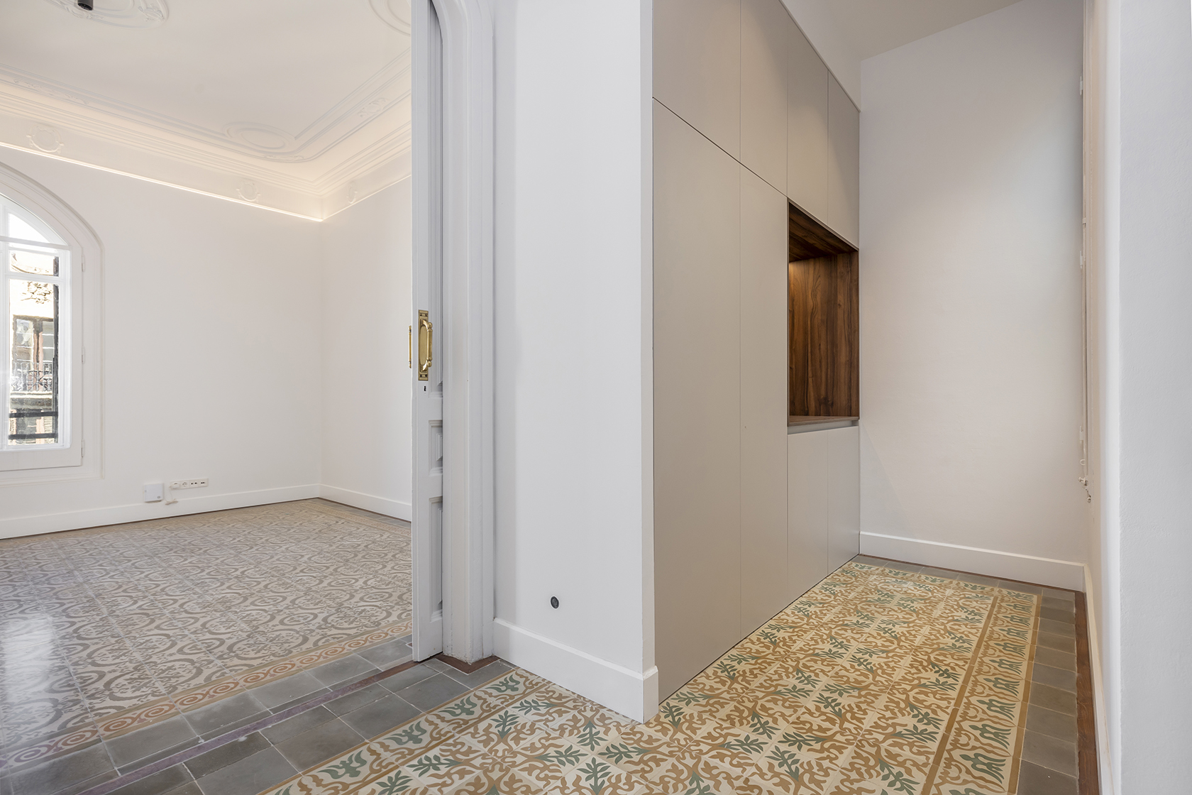 Durant el procés de restauració, s’han preservat amb cura els elements arquitectònics distintius que posicionen aquestes propietats entre les més cobejades de l’Eixample. Entre ells, sobresurten els sostres de 3,5 metres d’alçada amb motllures elegants i els terres de paviment Nolla, d’alt valor patrimonial.