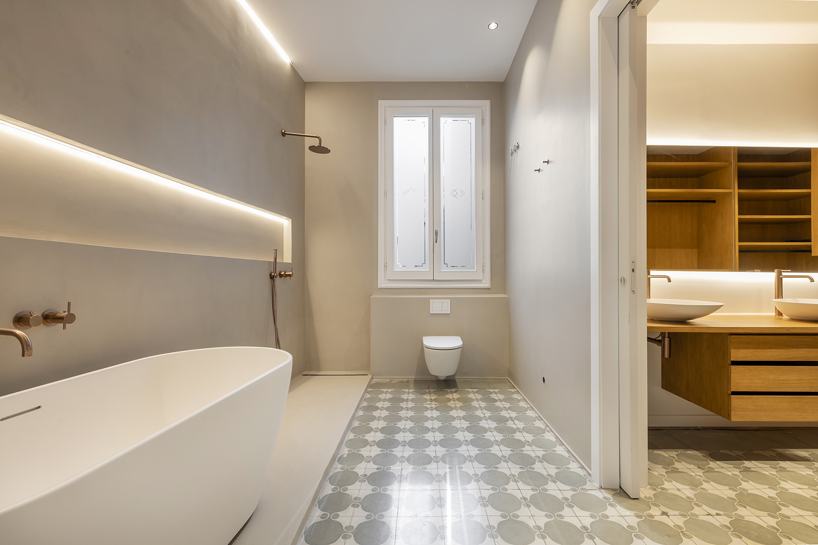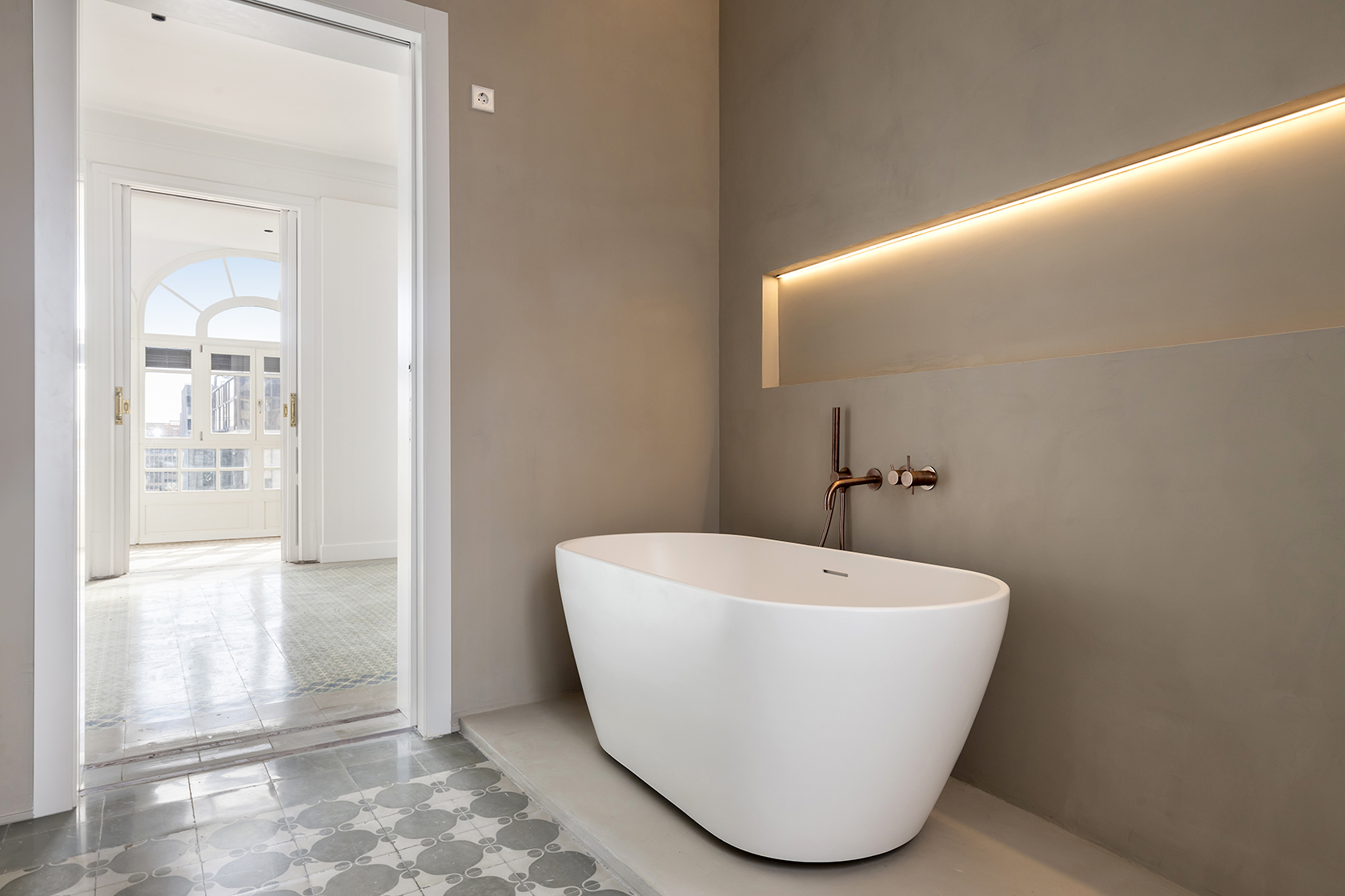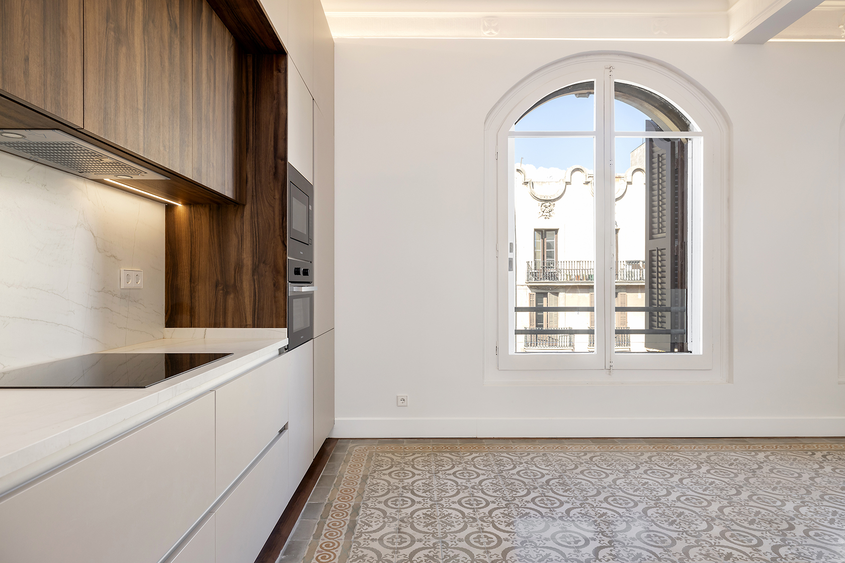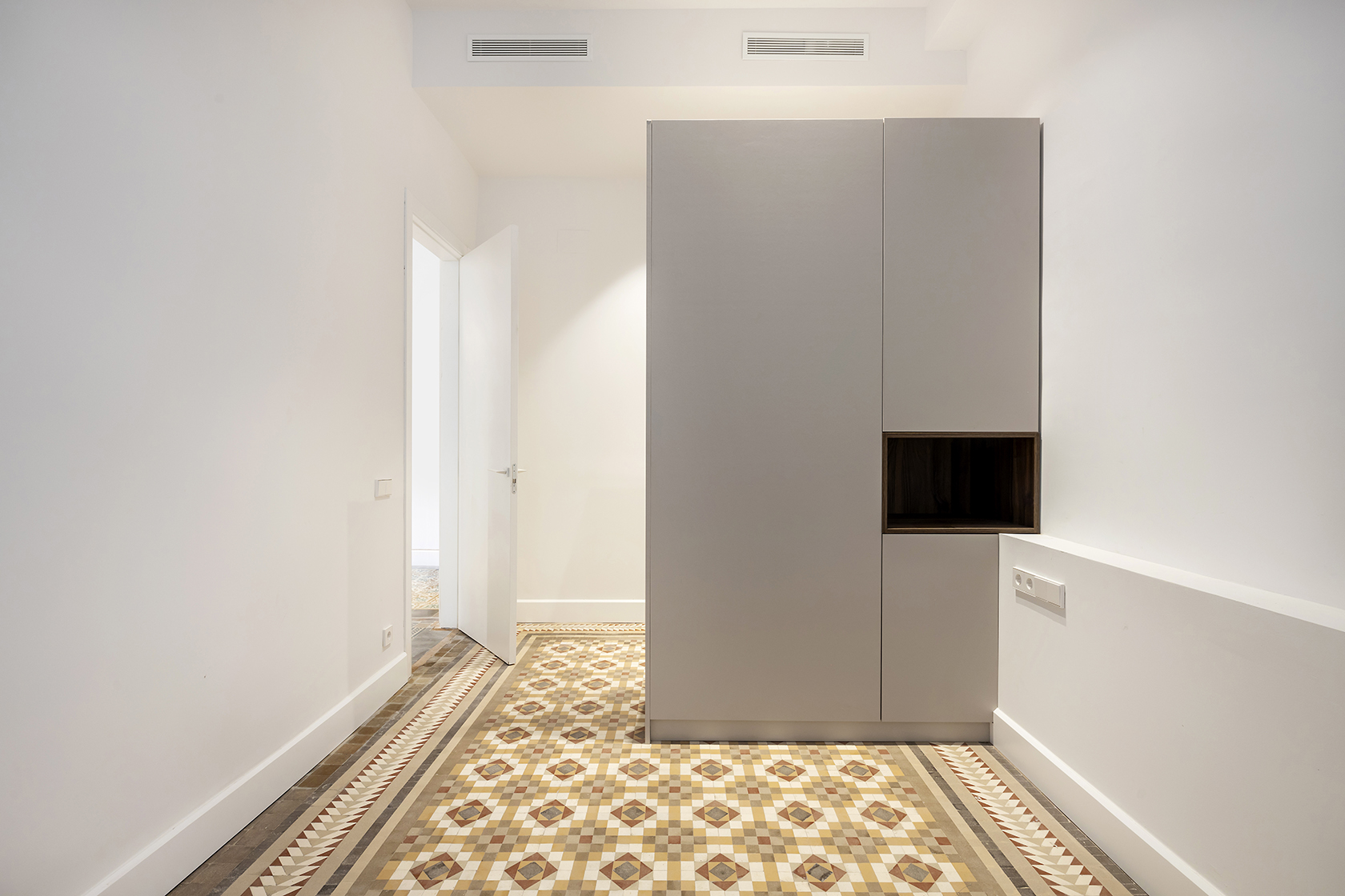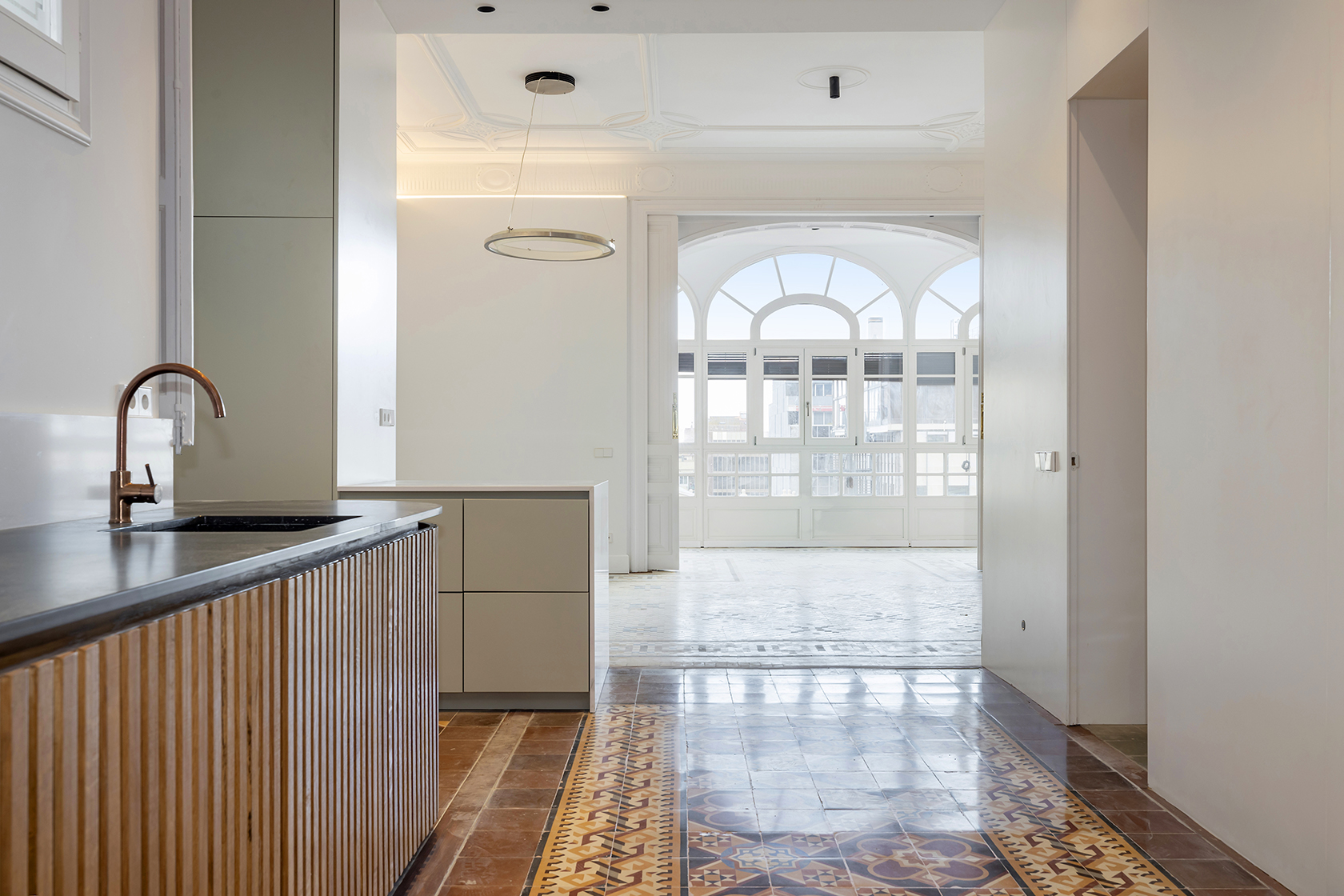 Durant el procés de restauració, s’han preservat amb cura els elements arquitectònics distintius que posicionen aquestes propietats entre les més cobejades de l’Eixample. Entre ells, sobresurten els sostres de 3,5 metres d’alçada amb motllures elegants i els terres de paviment Nolla, d’alt valor patrimonial.