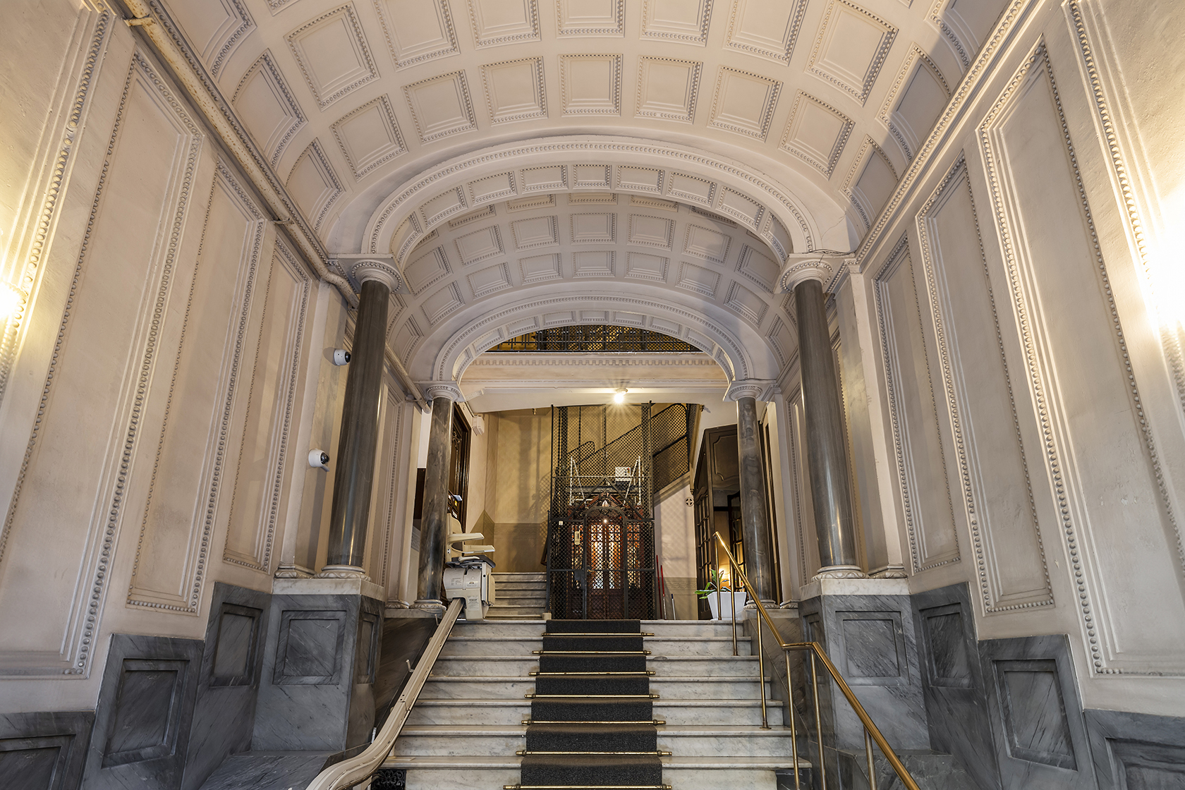 La sensació d’amplitud és un dels atributs més destacats, perceptible des del mateix vestíbul, que manté l’estil original de l’edifici amb detallades pintures amb relleu a les parets.